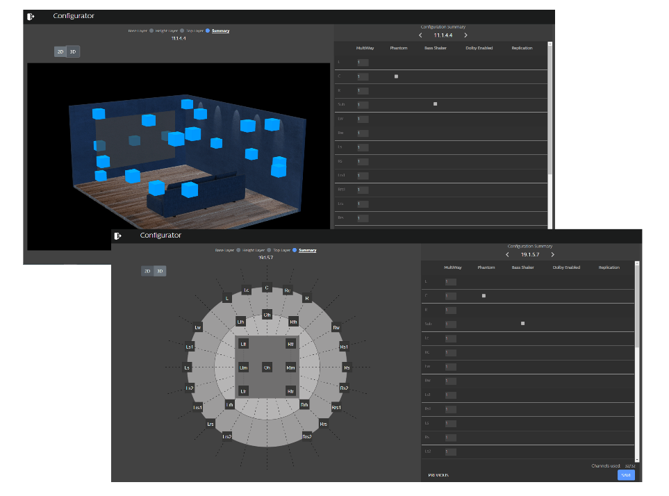Up to 32ch, Multi-theater, Multi-layout & multi-room, Standard and Expert Bass Management, Multi-way speakers, Multi-subwoofer