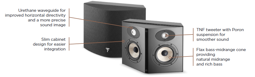 Flax konus zvučnika od 13 cm pruža prirodan zvuk, bogat bas i odličnu definiciju zvuka. Fokalova dva TNF visokotonca, sa svojim genijalnim talasovodom za kontrolisanu usmerenost, pružaju preciznost, kontrolu i glatke visoke tonove.